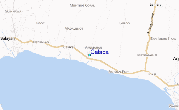 Use this relief map to navigate to tide stations, surf breaks and cities that are in the area of Calaca.