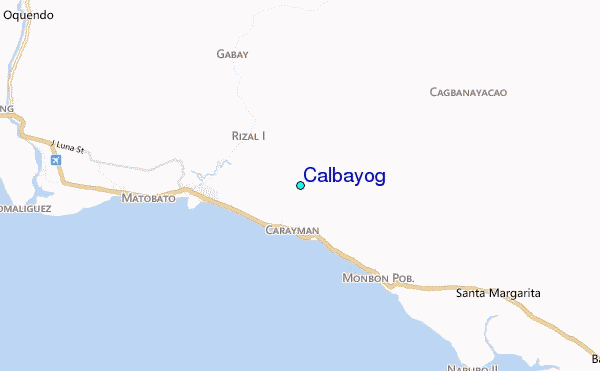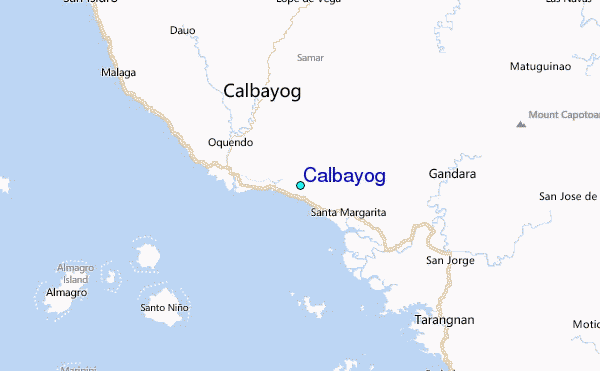 Use this relief map to navigate to tide stations, surf breaks and cities that are in the area of Calbayog.
