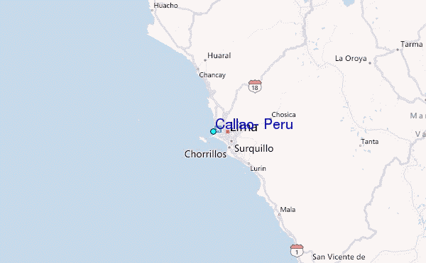 Use this relief map to navigate to tide stations, surf breaks and cities that are in the area of Callao, Peru.