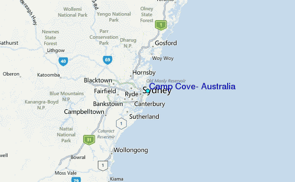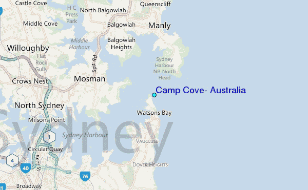 Use this relief map to navigate to tide stations, surf breaks and cities that are in the area of Camp Cove, Australia.