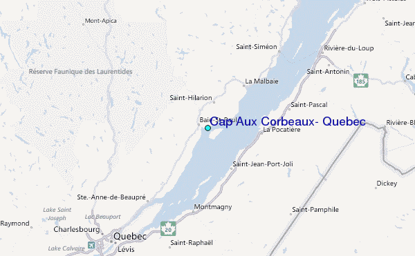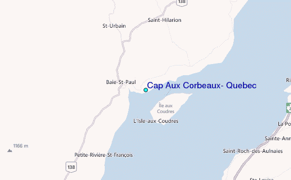 Use this relief map to navigate to tide stations, surf breaks and cities that are in the area of Cap Aux Corbeaux, Quebec.