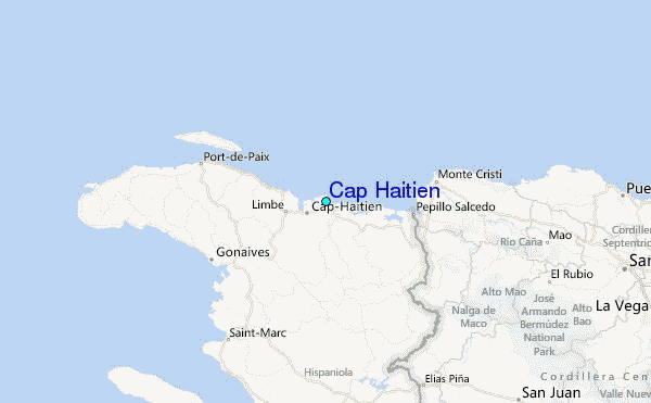 Use this relief map to navigate to tide stations, surf breaks and cities that are in the area of Cap Haitien.