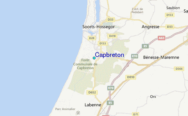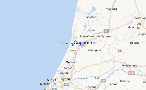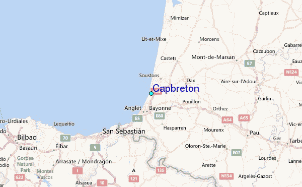 Use this relief map to navigate to tide stations, surf breaks and cities that are in the area of Capbreton.
