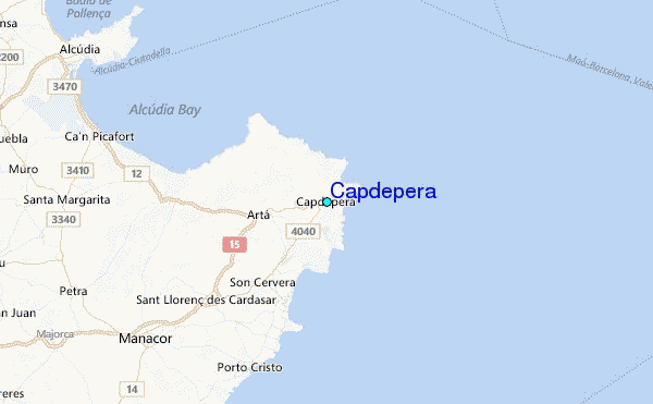 Use this relief map to navigate to tide stations, surf breaks and cities that are in the area of Capdepera.