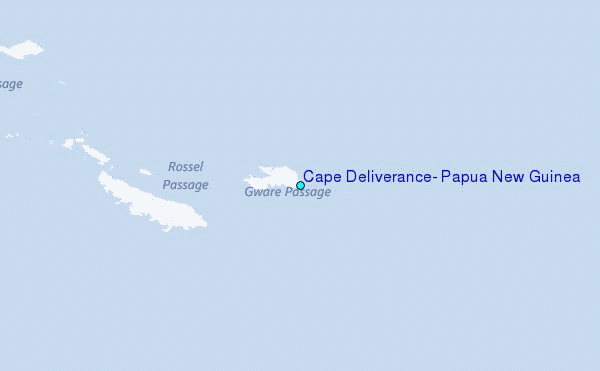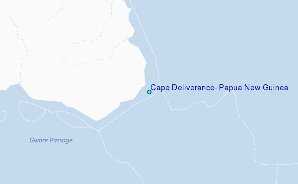 Use this relief map to navigate to tide stations, surf breaks and cities that are in the area of Cape Deliverance, Papua New Guinea.