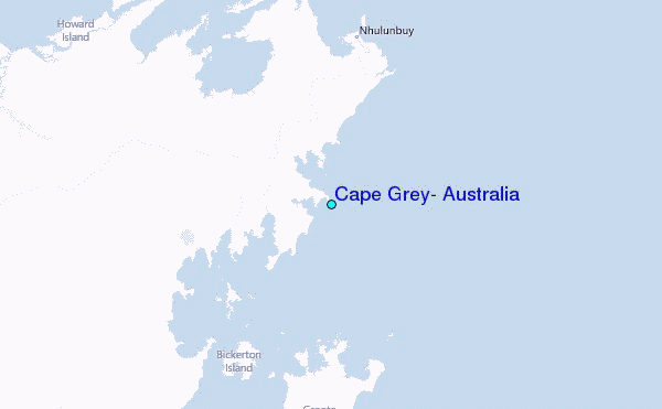 Use this relief map to navigate to tide stations, surf breaks and cities that are in the area of Cape Grey, Australia.