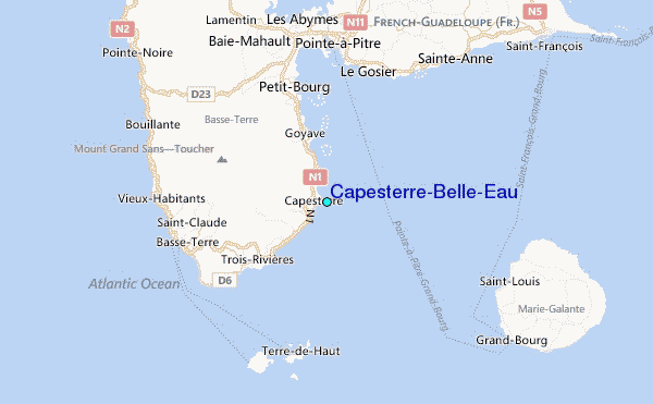 Use this relief map to navigate to tide stations, surf breaks and cities that are in the area of Capesterre-Belle-Eau.