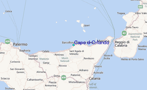 Use this relief map to navigate to tide stations, surf breaks and cities that are in the area of Capo d'Orlando.