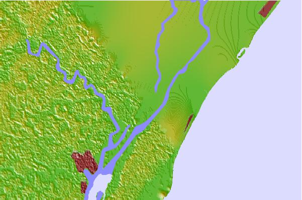 Use this relief map to navigate to tide stations, surf breaks and cities that are in the area of Carr Creek, 1 miles above entrance, Great Pee Dee River, South Carolina.