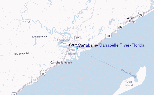 Use this relief map to navigate to tide stations, surf breaks and cities that are in the area of Carrabelle, Carrabelle River, Florida.