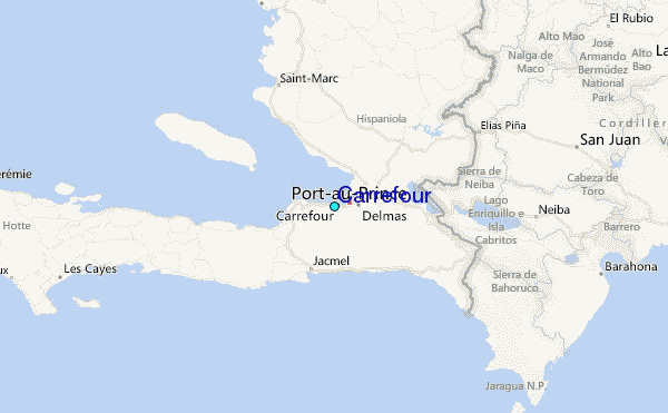 Use this relief map to navigate to tide stations, surf breaks and cities that are in the area of Carrefour.