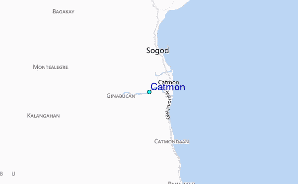 Use this relief map to navigate to tide stations, surf breaks and cities that are in the area of Catmon.
