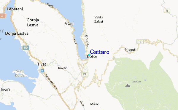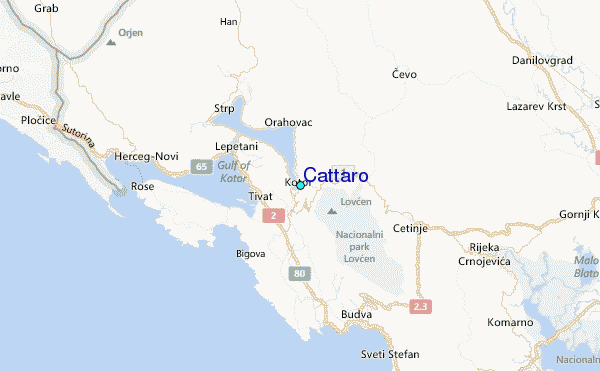 Use this relief map to navigate to tide stations, surf breaks and cities that are in the area of Cattaro.