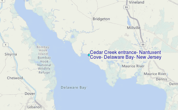 Other Nearby Locations' tide tables and tide charts to Cedar Creek entrance, Nantuxent Cove, Delaware Bay, New Jersey: