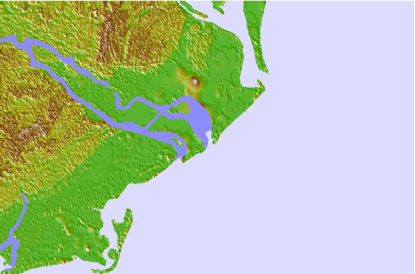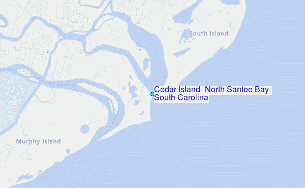 Use this relief map to navigate to tide stations, surf breaks and cities that are in the area of Cedar Island, North Santee Bay, South Carolina.