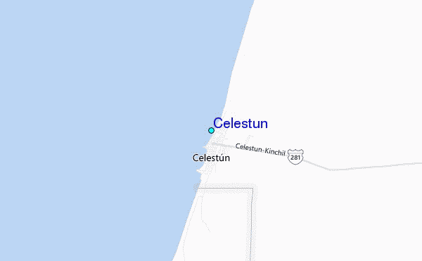 Use this relief map to navigate to tide stations, surf breaks and cities that are in the area of Celestun.