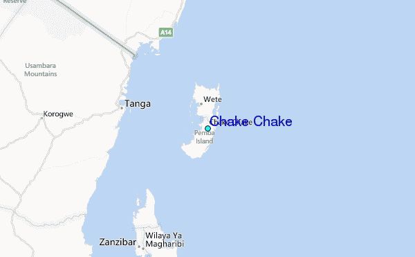 Use this relief map to navigate to tide stations, surf breaks and cities that are in the area of Chake Chake.