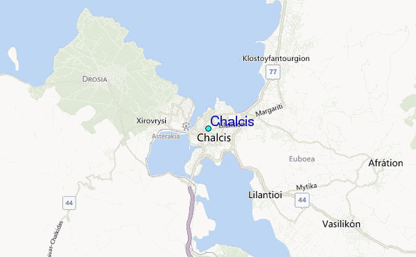 Use this relief map to navigate to tide stations, surf breaks and cities that are in the area of Chalcis.