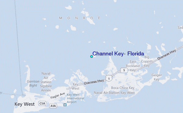 Use this relief map to navigate to tide stations, surf breaks and cities that are in the area of Channel Key, Florida.