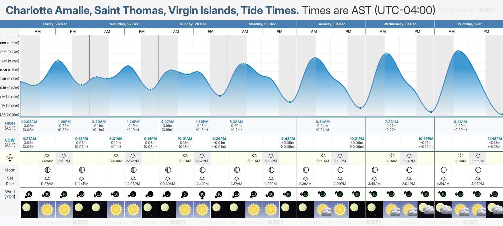 Tide Times for Charlotte Amalie: Thursday 01 January 2026
