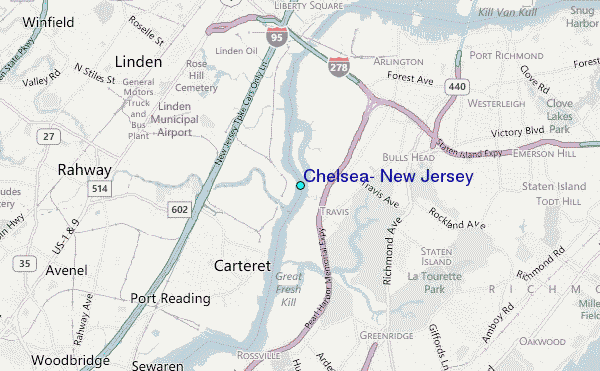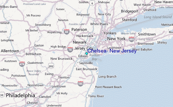 Use this relief map to navigate to tide stations, surf breaks and cities that are in the area of Chelsea, New Jersey.