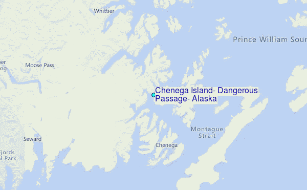 Use this relief map to navigate to tide stations, surf breaks and cities that are in the area of Chenega Island, Dangerous Passage, Alaska.