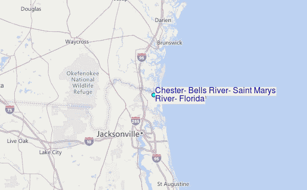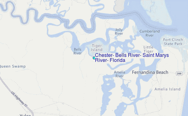 Use this relief map to navigate to tide stations, surf breaks and cities that are in the area of Chester, Bells River, Saint Marys River, Florida.