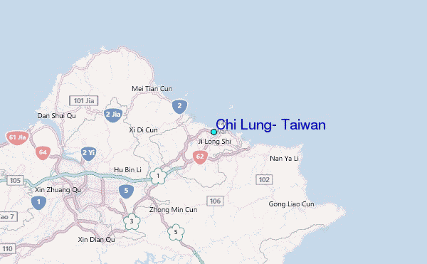 Use this relief map to navigate to tide stations, surf breaks and cities that are in the area of Chi Lung, Taiwan.