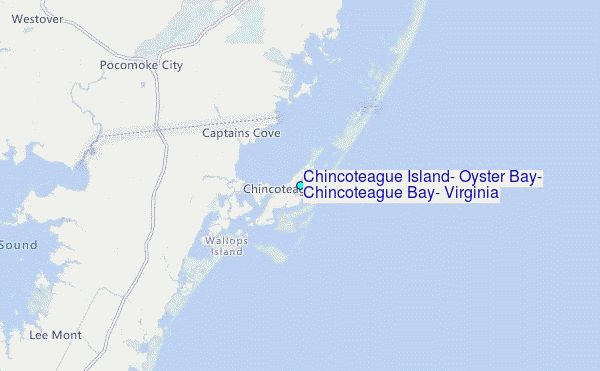 Use this relief map to navigate to tide stations, surf breaks and cities that are in the area of Chincoteague Island, Oyster Bay, Chincoteague Bay, Virginia.