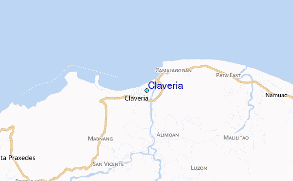 Use this relief map to navigate to tide stations, surf breaks and cities that are in the area of Claveria.