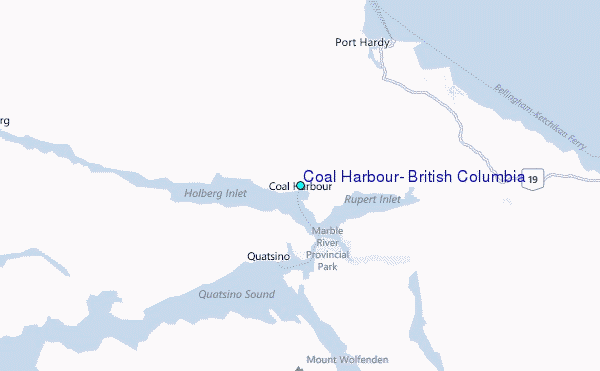 Use this relief map to navigate to tide stations, surf breaks and cities that are in the area of Coal Harbour, British Columbia.