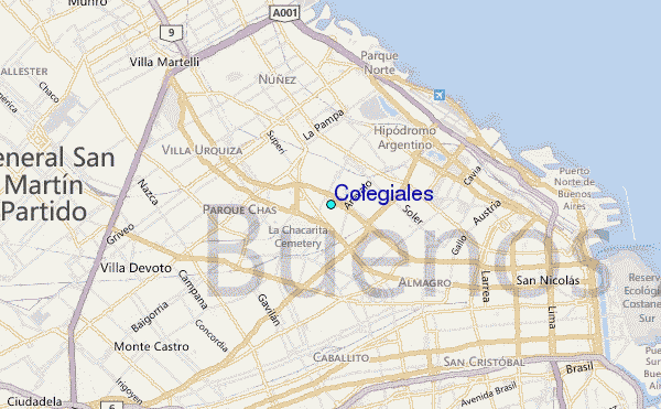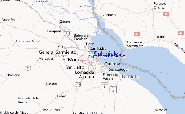 Use this relief map to navigate to tide stations, surf breaks and cities that are in the area of Colegiales.