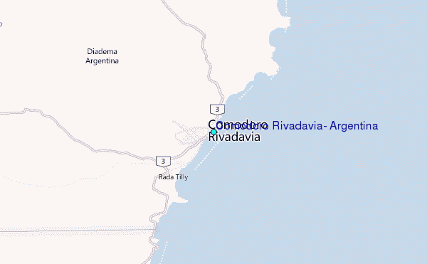 Use this relief map to navigate to tide stations, surf breaks and cities that are in the area of Comodoro Rivadavia, Argentina.