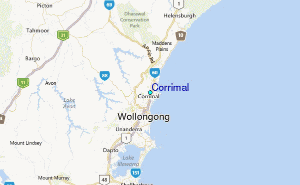 Use this relief map to navigate to tide stations, surf breaks and cities that are in the area of Corrimal.