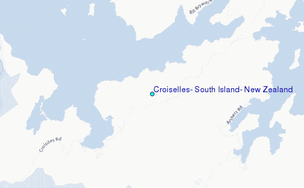 Use this relief map to navigate to tide stations, surf breaks and cities that are in the area of Croiselles, South Island, New Zealand.