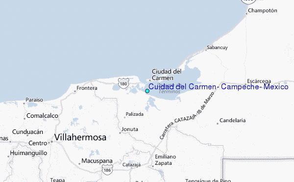 Other Nearby Locations' tide tables and tide charts to Cuidad del Carmen, Campeche, Mexico:
