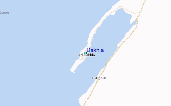 Use this relief map to navigate to tide stations, surf breaks and cities that are in the area of Dakhla.