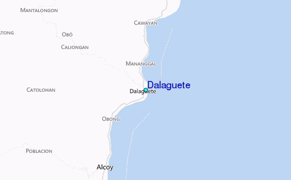 Use this relief map to navigate to tide stations, surf breaks and cities that are in the area of Dalaguete.