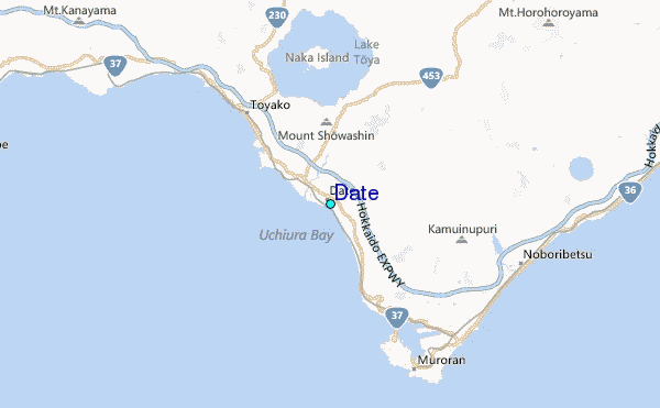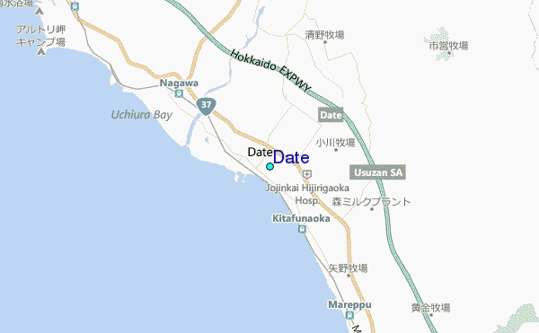 Use this relief map to navigate to tide stations, surf breaks and cities that are in the area of Date.