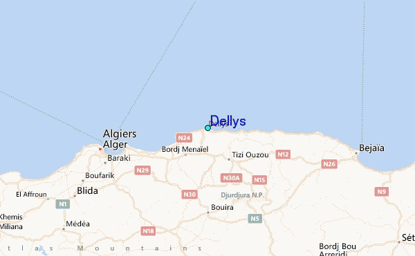 Use this relief map to navigate to tide stations, surf breaks and cities that are in the area of Dellys.
