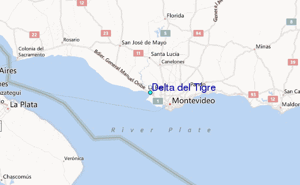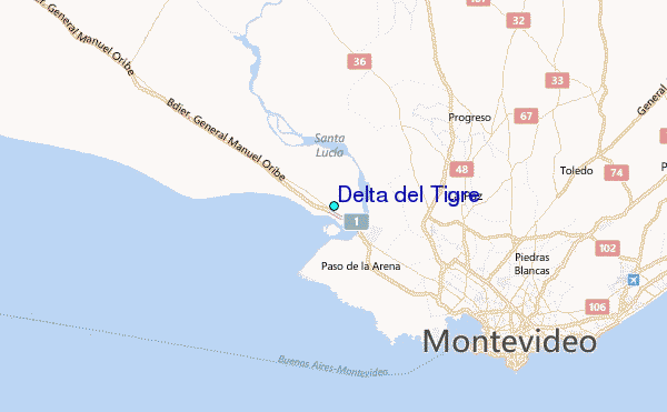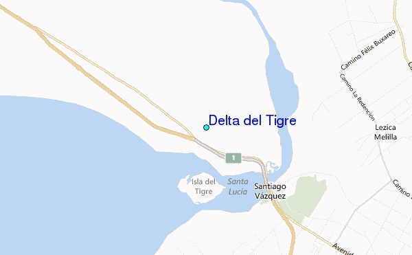 Use this relief map to navigate to tide stations, surf breaks and cities that are in the area of Delta del Tigre.
