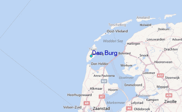 Use this relief map to navigate to tide stations, surf breaks and cities that are in the area of Den Burg.