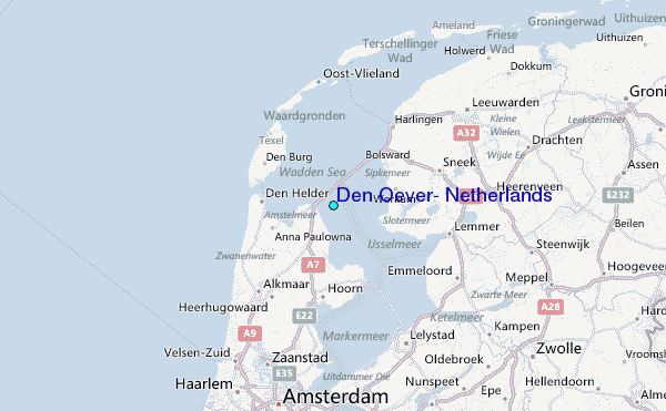 Use this relief map to navigate to tide stations, surf breaks and cities that are in the area of Den Oever, Netherlands.