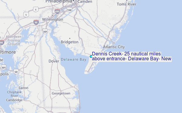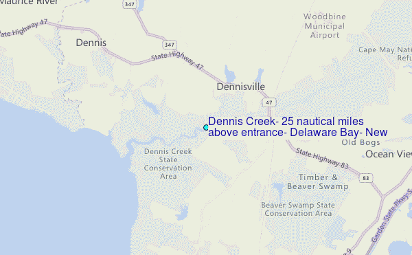 Choose Dennis Creek, 2.5 nautical miles above entrance, Delaware Bay, New Jersey Location Map Zoom: