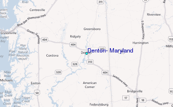 Use this relief map to navigate to tide stations, surf breaks and cities that are in the area of Denton, Maryland.