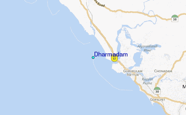 Use this relief map to navigate to tide stations, surf breaks and cities that are in the area of Dharmadam.