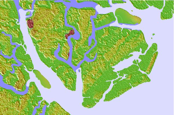 Use this relief map to navigate to tide stations, surf breaks and cities that are in the area of Distant Island, Cowen Creek, Beaufort River, South Carolina.