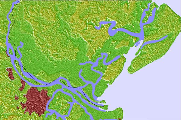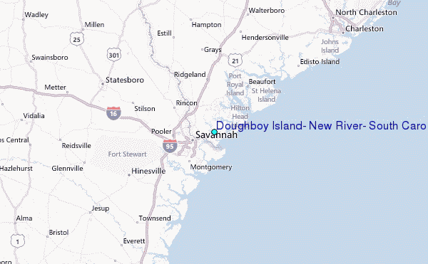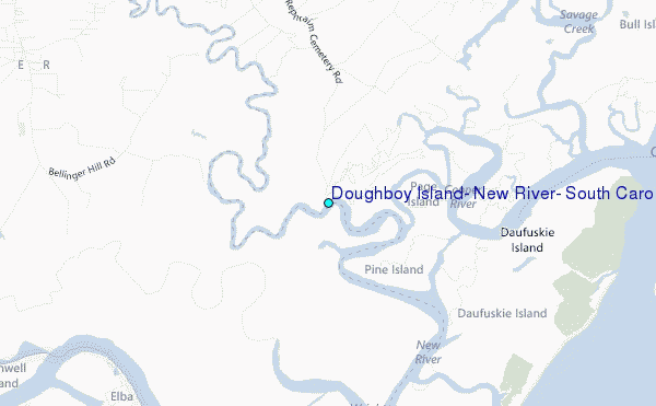 Use this relief map to navigate to tide stations, surf breaks and cities that are in the area of Doughboy Island, New River, South Carolina.