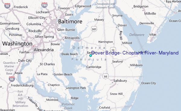 Use this relief map to navigate to tide stations, surf breaks and cities that are in the area of Dover Bridge, Choptank River, Maryland.