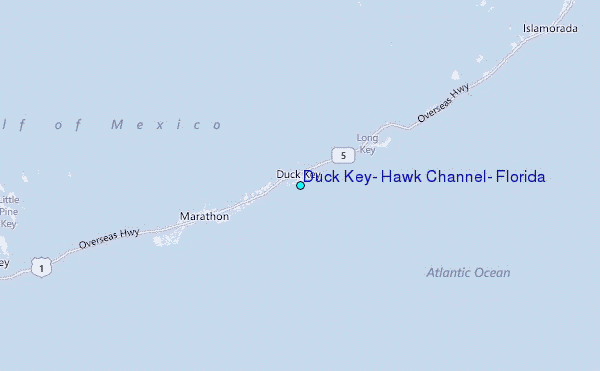 Use this relief map to navigate to tide stations, surf breaks and cities that are in the area of Duck Key, Hawk Channel, Florida.